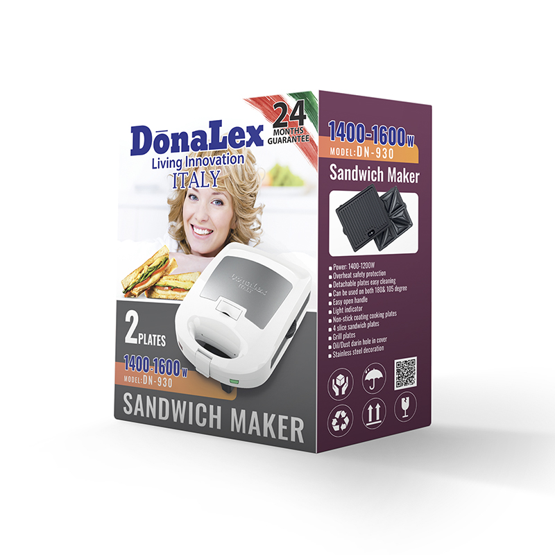 ساندویچساز دونالکس مدل DN-930 یک دستگاه حرفهای و با کارایی بالا است که با توان 1200 تا 1400 وات، گرمایش سریع و یکنواخت را برای تهیه انواع ساندویچها و غذاهای گریل شده فراهم میکند.